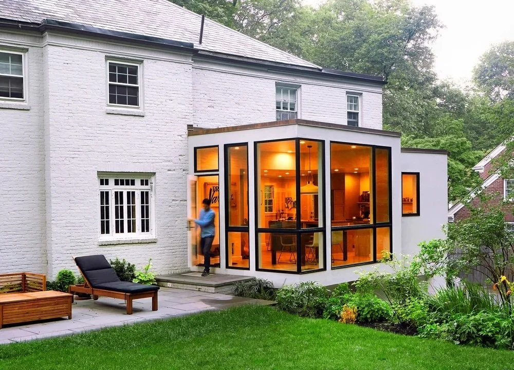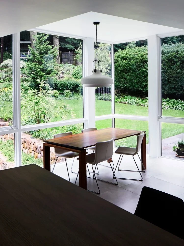 Sunrooms aren’t the only space that can be flooded with natural light. We designed this ‘glass box” addition for a house in Chestnut Hill as part of the kitchen renovation. The kitchen table occupies the new light-filled space overlooking the backyard.