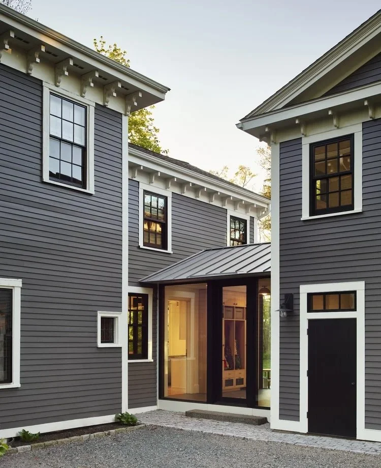 In this example, we designed a glass-enclosed connection between the barn wing of a historic Milton house and the renovated kitchen. The new structure provides a transition into the house along with storage for coats with glass on the front and back of the space so you can see through the entire mudroom.